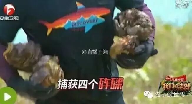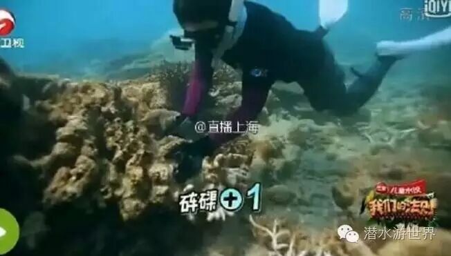 除了抓捕砗磲,这些明星们还在水下触摸海洋生物: