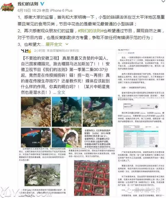 唉~做为公众人物,做为一名潜水员,面对严重违反潜水安全准则的行为,不已为然,反而沾沾自喜。我想,如果自己曾经犯错,没有意识到也好,疏忽大意也好,都应该引以为戒,而不是轻描淡写地说为了看海洋美景,这些危险都不算什么。如果是一个热爱海洋的潜水员,得知节目中有此类内容,应该向节目组提出质疑,而不是不管不顾地抓捕受保护的濒危物种,还大肆宣扬“美味”。