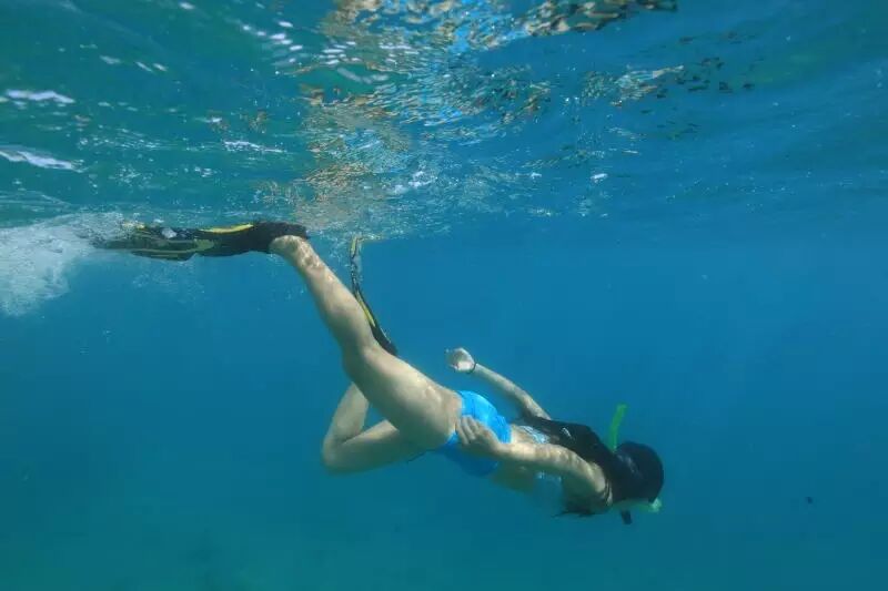 经过三天的刻苦学习,我学会了所有的动作,并轻松通过了笔试。在所学的项目中,最让我难以攻克的是摘下面镜再重新戴上,然后用鼻腔呼气排出海水这个动作(直到现在,做此动作前我还是会紧张)。因为面镜的作用是把整个眼睛和鼻子都罩上,起到与海水隔离的效果,一旦面镜离开头部,你的视线立刻变得模糊,鼻子直接暴露在海水中,万一这时候一慌乱用鼻子吸上一点海水,那只好把海水当饮料,咕嘟地吞了下去。我喝过一次,绝对是我这辈子喝过最难喝的“饮料”,整个呼吸道都是辣辣的感觉。