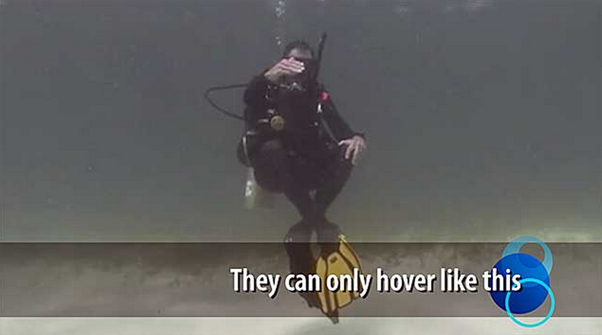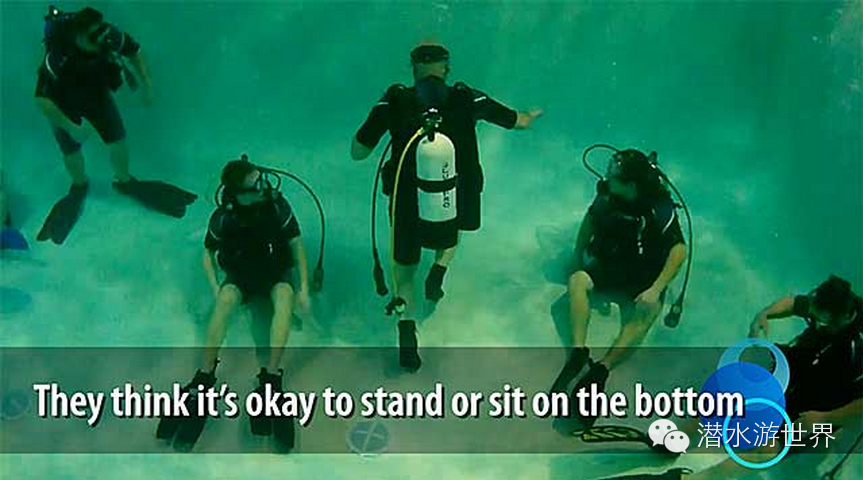 他们只能这样漂浮。经常有人演示中性浮力的时候是这样做的,并且谎称只会这样就这叫掌握了“良好的中性浮力”,一开始这样是可以的,但是要练习正确的平衡姿态-trim
