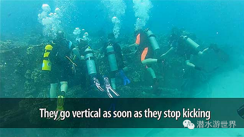 一旦停止踢腿,人就变竖起来,这个是trim有问题的表现,今年padi也要求trim了。