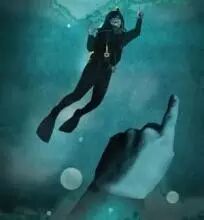 Gerry 抬头看向水面,很欣慰地看到潜导就在他上面。潜导的脑袋在转来转去,“他可能是在寻找 Anne ”,Gerry 这样想着。然后,他看到潜导指着自己并向他竖起大拇指,“好的”,Gerry 想,“他想要我留在原地。”