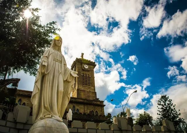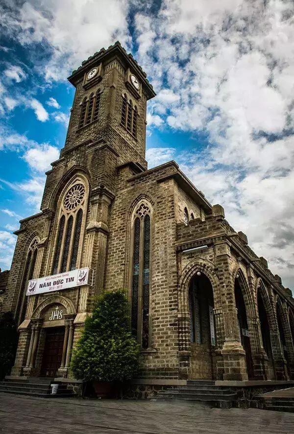 这是一座哥特式教堂。与大叻粉色教堂、胡志明红教堂不一样的是,芽庄教堂是纯粹的石头颜色,没有任何缤纷的颜色装饰却显得很雄伟大气。登上教堂,可以一览整个芽庄。教堂外是繁杂吵嚷的街头,教堂内则静谧平和,俨然另一个世界。