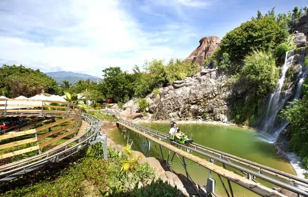 这是一座拥有东南亚最大的游泳池、以及长达 700米长的私属海滩、世界上最长的跨海缆车、包含过山车、旋转木马和室内电玩城的大型游乐园、4D电影院和规模不小的海洋馆。