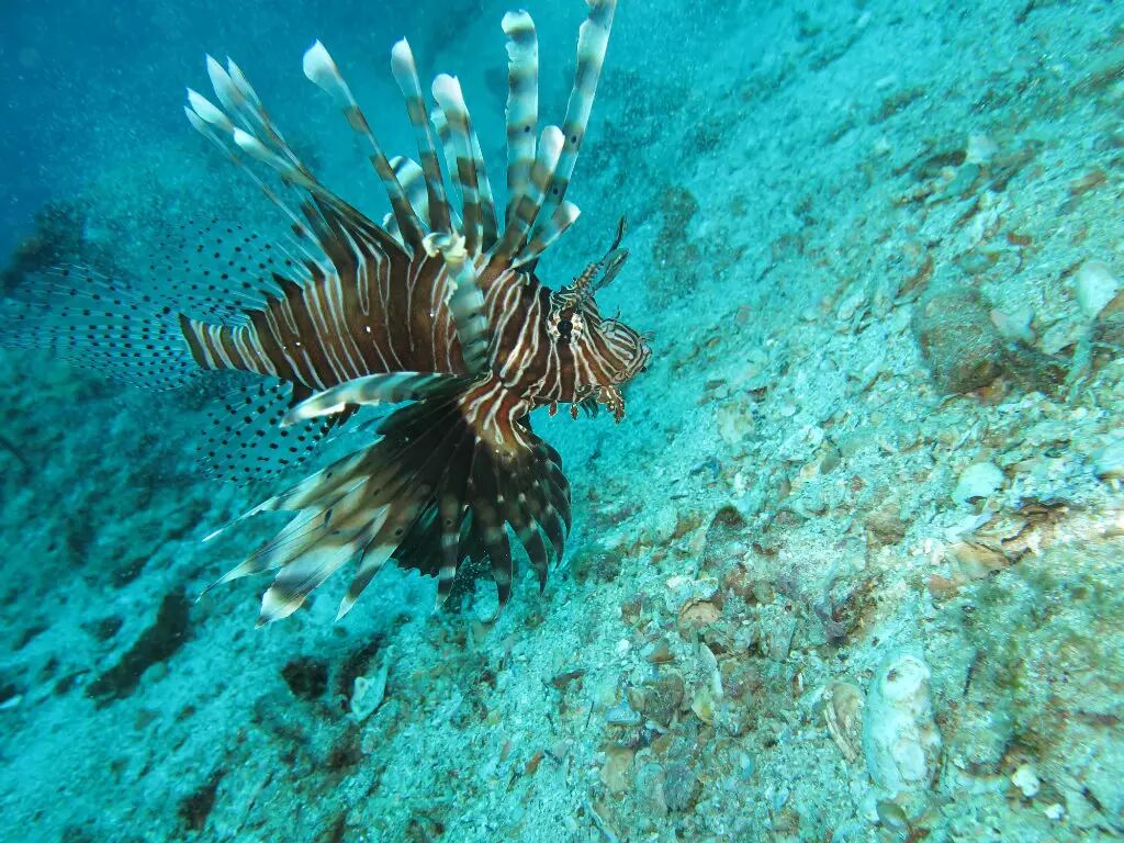 在6-9米处有个洞穴。可以见到狮子鱼,青衣,扳机鱼等。和一些软体生物。