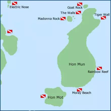 Hon Mun 岛: 这里其实包括芽庄所有成熟的潜点。具体各潜点位置见下图: