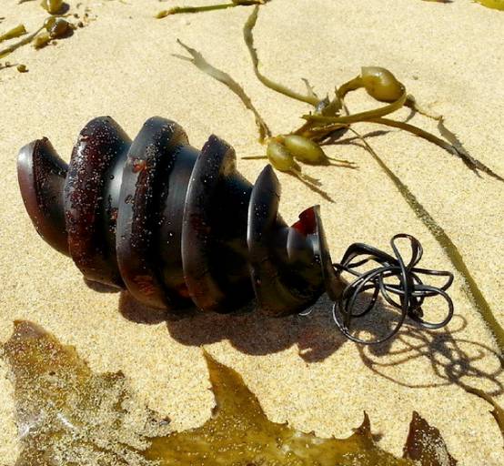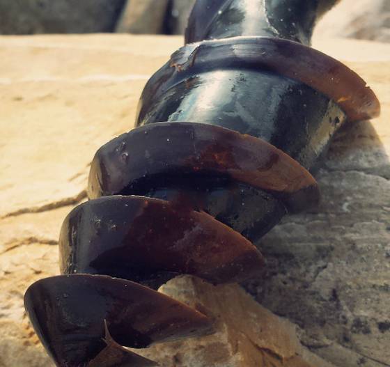 这种螺旋状的就是虎鲨的卵,你仔细观察能看到上面的小洞, 那是鲨鱼宝宝游出来的地方。